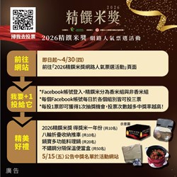 「2026精饌米獎」網路人氣票選開跑! 臺中市政府農業局‧作物生產科 2026-04-15 🎯為推廣臺灣優質好米,並提升國產米食產品能見度,農業部農糧署辦理「2026精饌米獎」網路人氣票選活動,邀請民眾一同參與投票,選出心目中最喜愛的優質好米! 💡票選分為【香米組】、【非香米組】兩大組別,由第一階段脫穎而出的20件優質包裝食米(兩組各10件)共同角逐。 ☑️活動採全民投票制,將選出兩組前3名網路人氣產品;每人每日各組別可各投3票,每日可投6票,完成投票即可獲得抽獎資格。 📌 活動資...