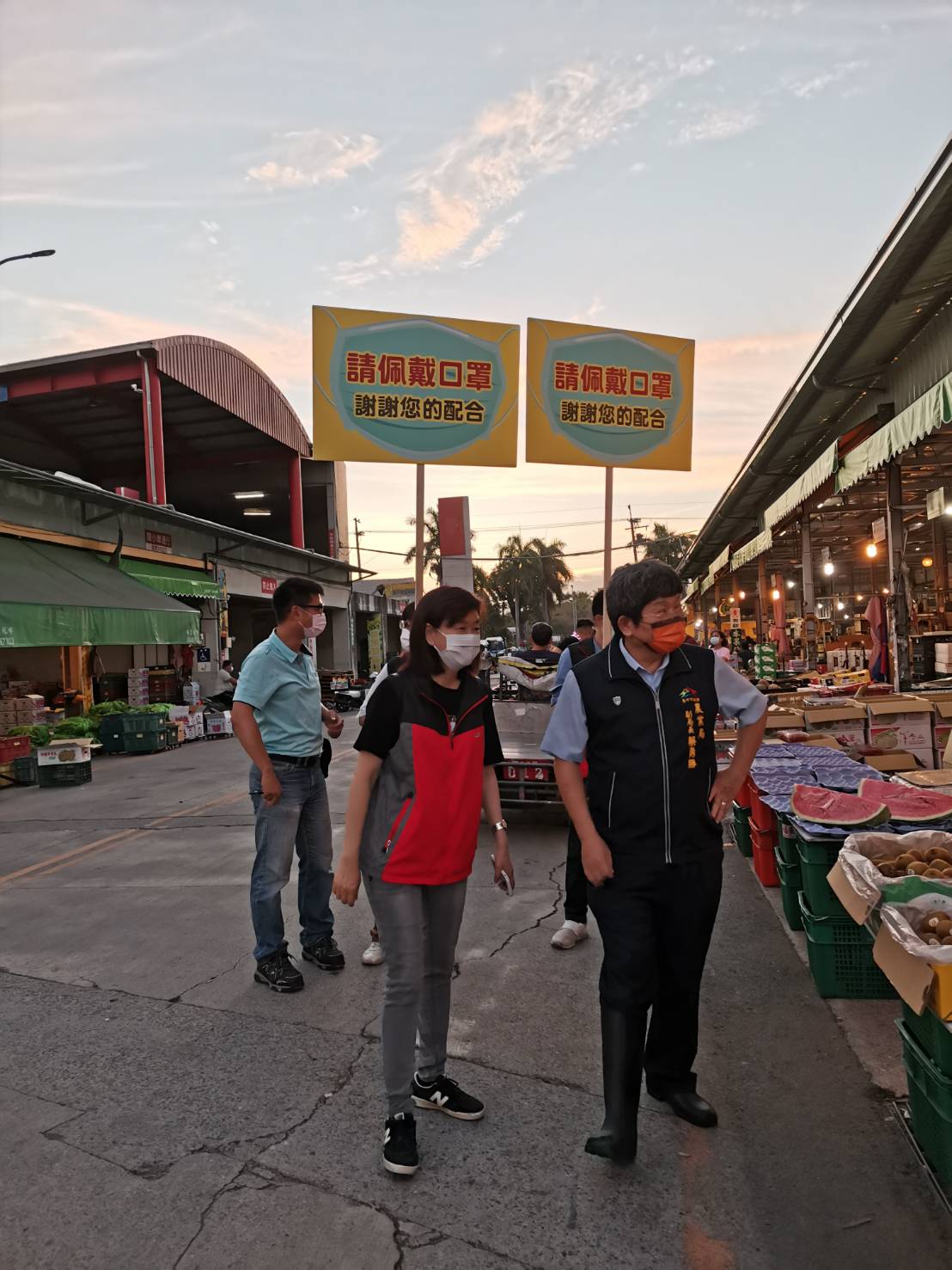 近日疫情逐漸升溫,台中市政府農業局配合中央落實各項防疫措施,農業局副局長蔡勇勝及主任秘書陳柏宏兵分2路昨(14)、今日至各農產品批發市場宣導稽查,要求務必嚴格遵守各項防疫規範,未戴口罩者將先規勸,並針對情節嚴重、屢勸不聽者依違反《傳染病防治法》規定,處3千元以上、1萬5千元以下罰鍰,絕不讓批發市場有機會成為防疫破口。
