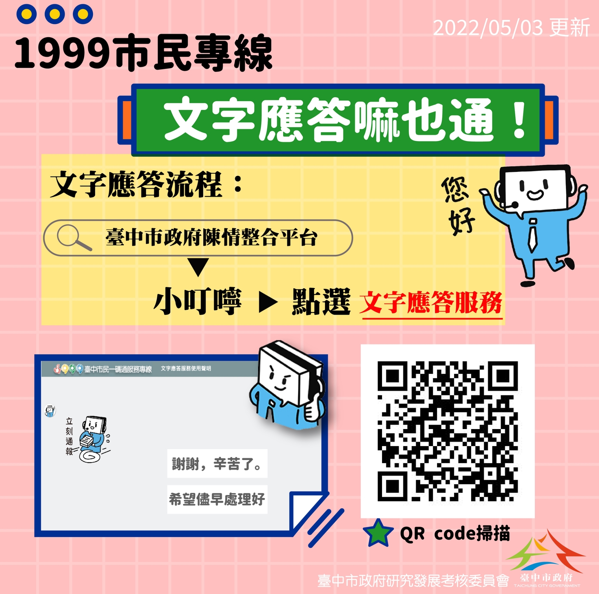 研考會主委吳皇昇表示,感謝市民朋友的支持,在進線量暴增情況下,鼓勵大家也可選擇1999線上諮詢(文字應答)方式,服務更多有緊急需求的民眾,讓大家收到更即時的回覆,也減輕1999話務中心人力負擔。