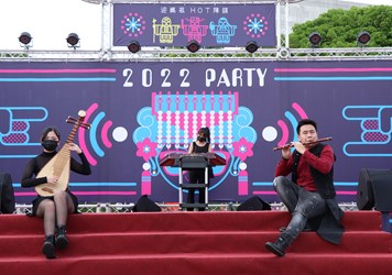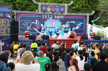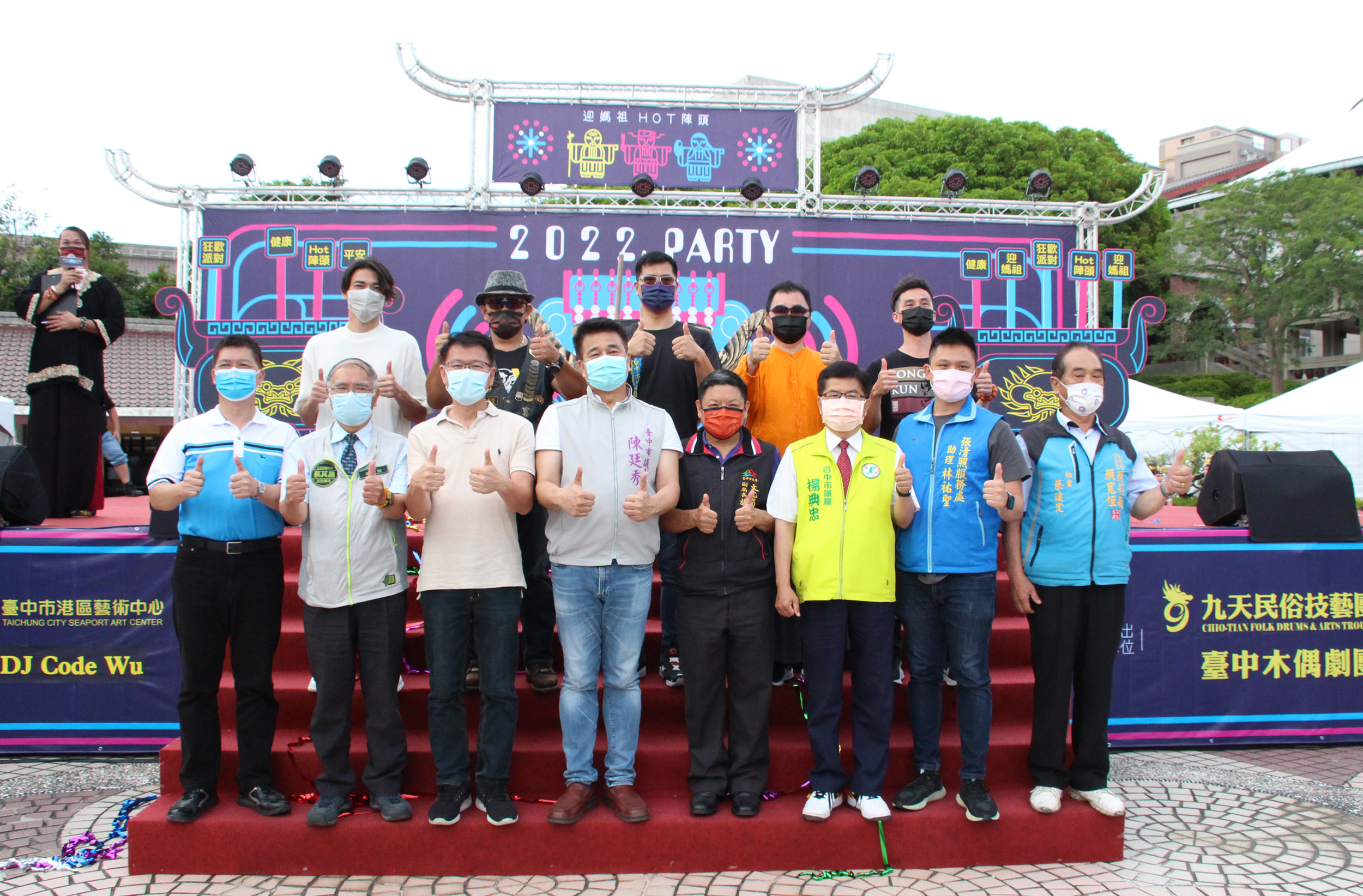 2022台中媽祖國際觀光文化節「迎媽祖HOT陣頭—陣頭狂歡PARTY」昨(29)日下午在港區藝術中心戶外廣場開演,陣容集結九天民俗技藝團、采風樂坊、宋坤傳藝及台中木偶劇團4大演藝團體,帶來融合東西方藝術的跨界演出,在落實防疫規範之下,打造狂歡派對的熱鬧氣氛及全新藝術饗宴。