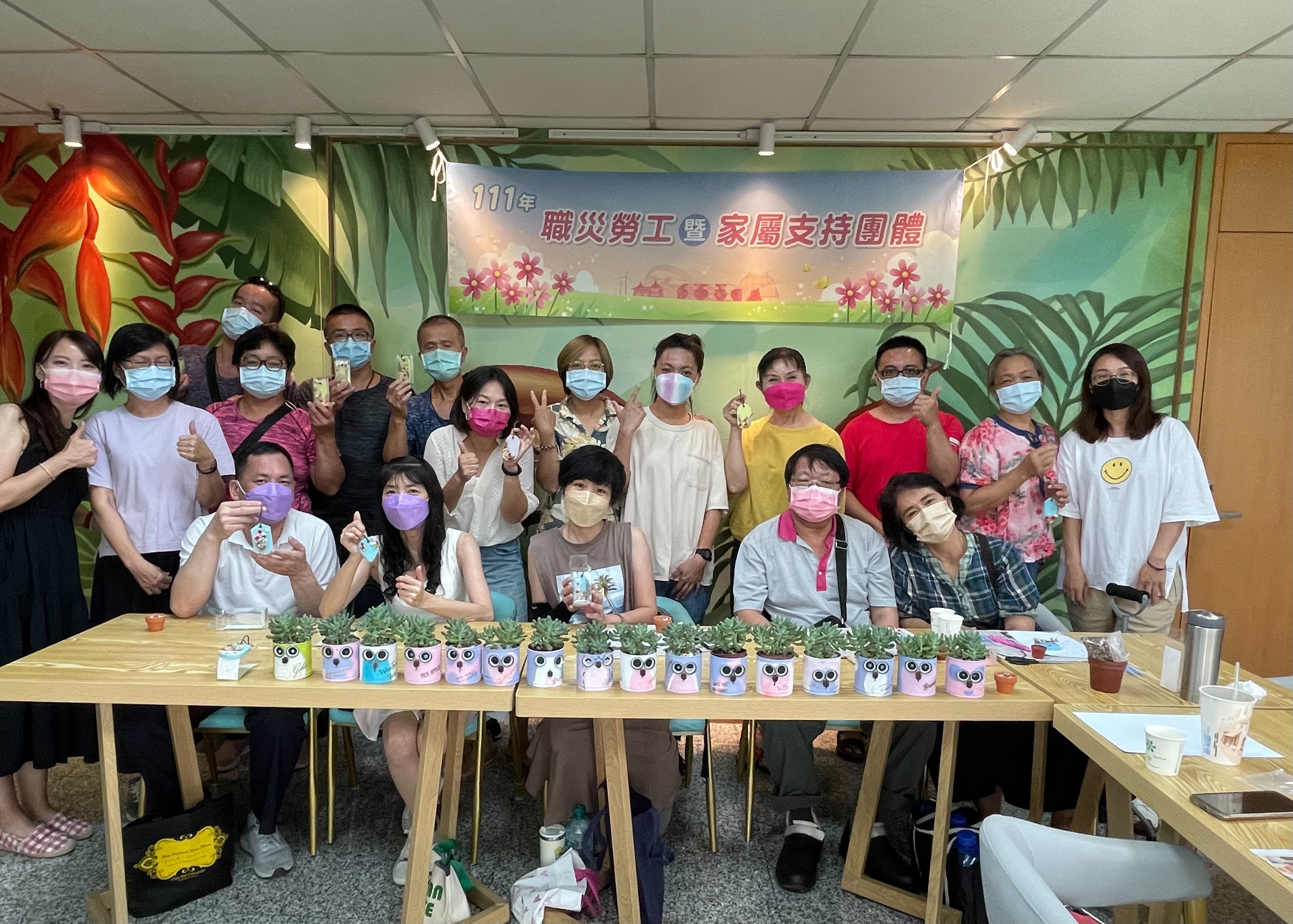 勞工局張大春局長表示,勞工局開辦職業災害勞工支持團體課程,藉由接觸植物、粉彩等課程引導,協助職災勞工達到心靈的平穩與提升自我價值,並且透過與相同遭遇的職災勞工間相互傾訴、支持與陪伴,共同走過人生關卡,使職災勞工於職災復原期間,找到身心安定的力量,並獲得可近性服務資源,更有助職災勞工與社會再次連結。