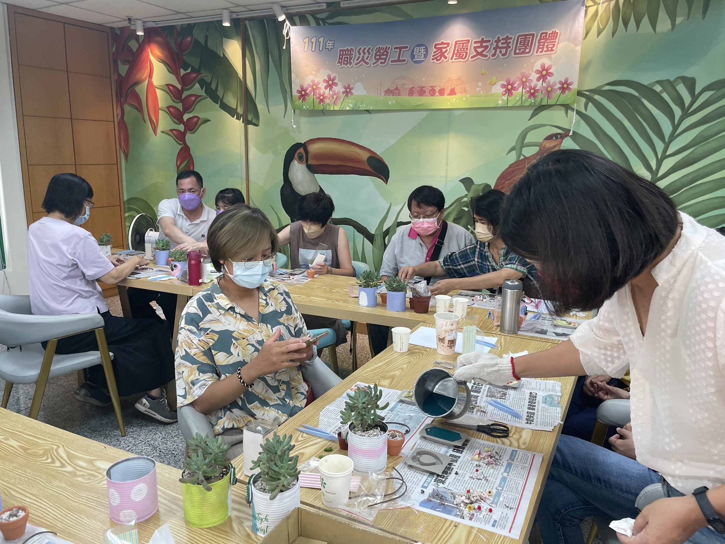 心再堅強也別獨自前行!近年疫情影響生活日常,使職災勞工生活充滿緊張及壓力,台中市政府勞工局今(23)日舉辦「職災勞工暨家屬支持團體」,邀請專業園藝治療師與日本粉彩希望藝術協會JPHAA粉彩師,藉由傳遞正念情緒療癒、紓壓的課程,引導並注入正能量的經驗分享,協助遭遇職業災害需面臨職傷調適、職涯中斷或復工困境的勞工,讓職災勞工及家屬的身心重新得力、勇往前行。