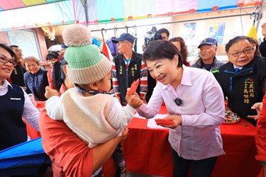 廖小姐表示,去年到太平太和宮向盧市長領取紅包,今年她特地來大里瑞和宮排隊領紅包,請盧市長為她媽媽祝福;她說,由於媽媽四年前出車禍,現在居住在護理之家,盼藉盧市長的祝福,為媽媽加油打氣。盧市長則祝福廖小姐的母親早日康復。