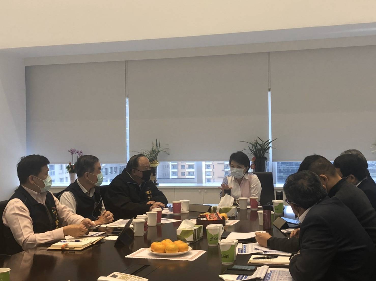 市長盧秀燕在早上7時30分率市府團隊召開防疫會議