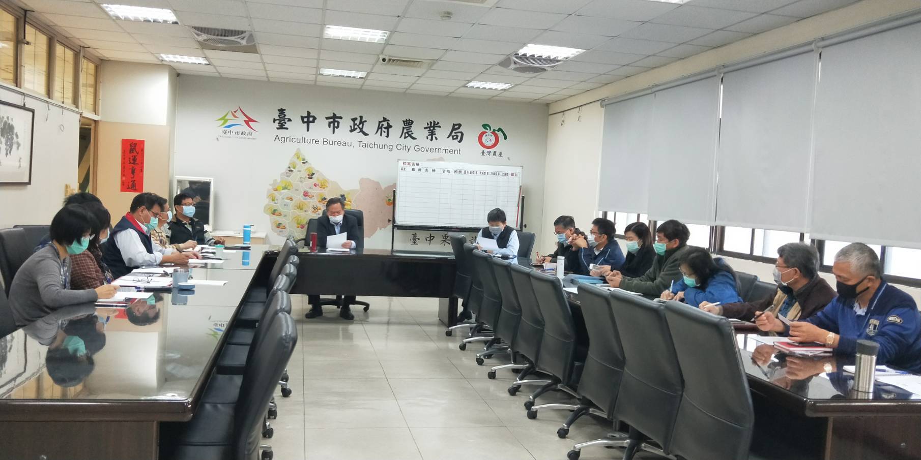 (30)日開工日,台中市政府持續嚴防武漢肺炎疫情,除組成跨局處聯合訪查小組,針對市售醫用口罩等防疫物資進行訪查,市府也取消原定新春團拜、捷運開放記者會等行程,市長盧秀燕在早上730分率市府團隊召開防疫會議,落實防疫工作,除第一線接觸洽公民眾的服務人員需配戴口罩,也備妥消毒酒精、額溫槍供民眾使用,並加強旅宿業、風景區、公車、運動場館、校園等場所消毒等防疫機制。