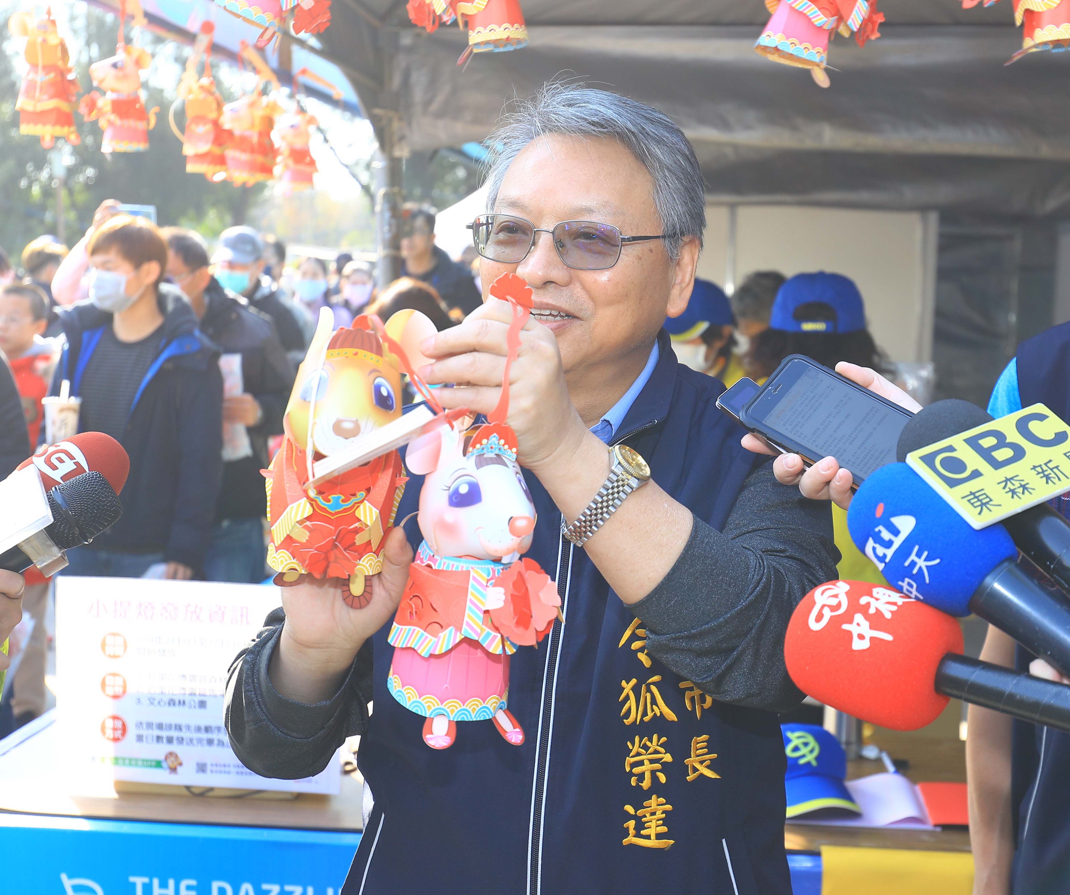 令狐副市長指出,即日起每天下午3點鐘準時發放小提燈,而且主展區森林園區、馬場園區及副展區文心森林公園都能領取,現場依民眾排隊先後順序發放小提燈,不可以其他物品先行占位,每人限領1盞,每日發放數量有限,發完為止。