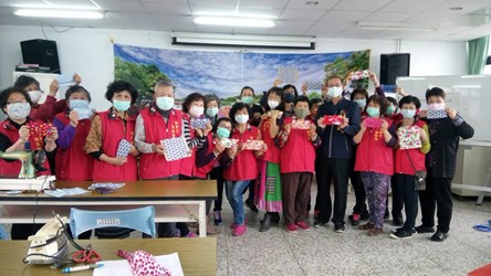 客委會表示,口罩套製作是由老師呂玉美設計樣版,參與志工再依樣畫葫蘆,現場志工除了做自己的口罩套,也幫無法來參加研習的志工夥伴製作,互助合作,一起守護健康。