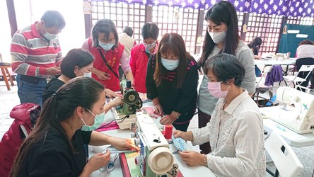 武漢肺炎疫情席捲全球,為響應醫療口罩留給第一線醫療人員政策,減緩口罩短缺壓力,台中市政府客家事務委員會今(29)日分別在石岡土牛客家文化館及東勢客家文化園區舉辦「防疫口罩套DIY研習」,由客委會志工手作縫出屬於自己的防疫利器。