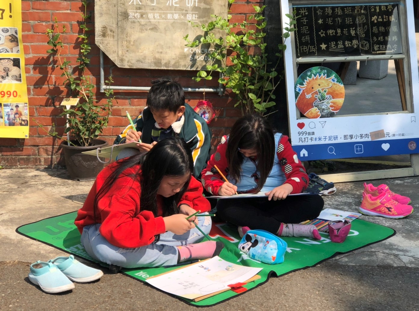 孩童認真寫生的樣貌