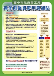 勞工局說明,凡申請人或事業單位負責人設籍台中市1年以上,年滿18歲以上未滿46歲,所經營事業體的營業地址及稅籍設於台中市,依法辦理登記或立案,且原始設立未超過6年,未曾接受中央或地方機關創業性貸款補助或身心障礙者自力更生創業補助,通過申貸經濟部中小企業處或台中市政府的青年創業貸款、青年從農創業貸款、青年農民創業及農企業貸款,即可向勞工局申請利息補貼,貸款金額以300萬元為限,利息補貼24個月,如有續貸或重辦貸款需求,得重新申請,每人以1次且合計貸款金額最高以300萬元為限。