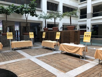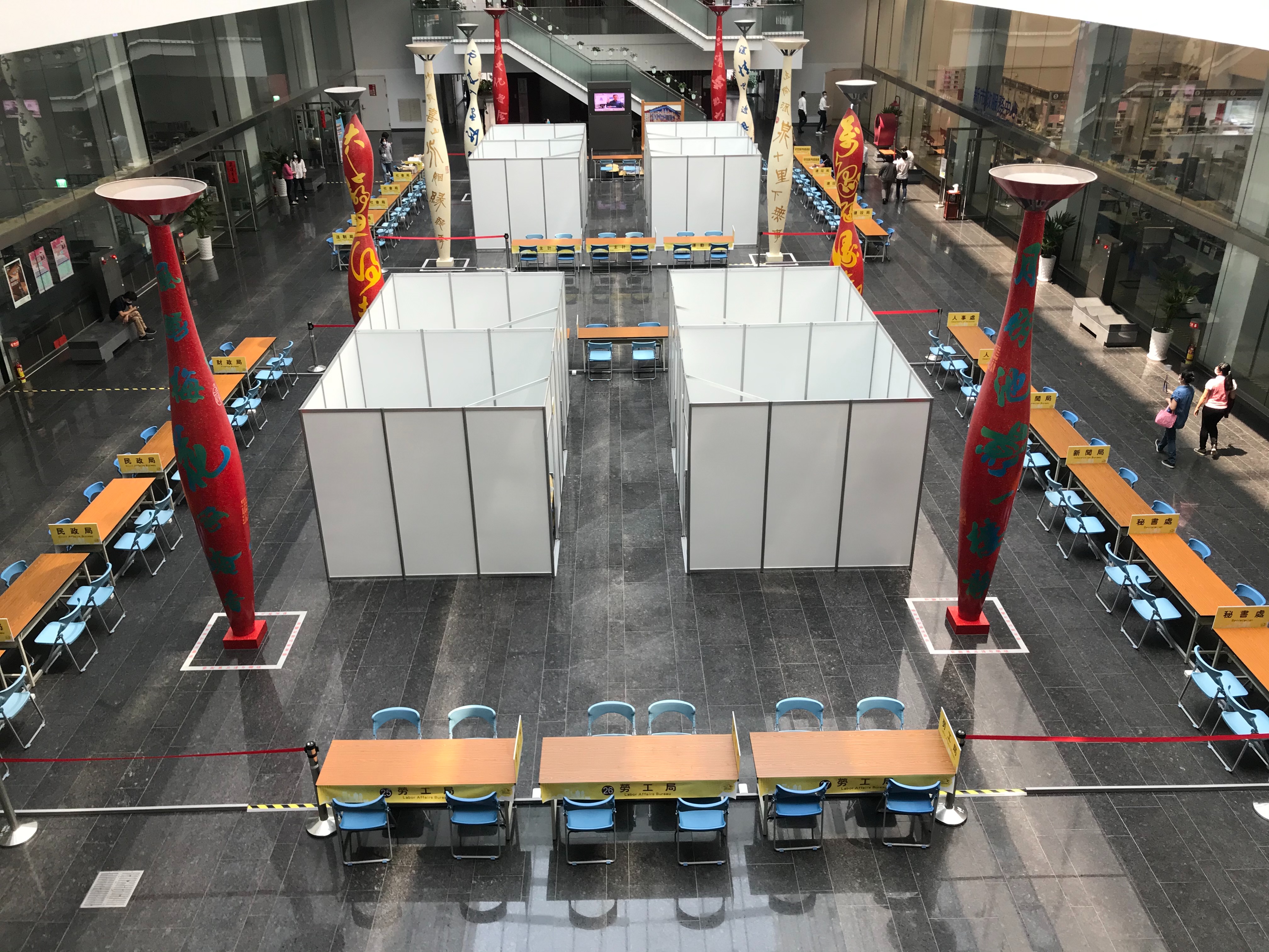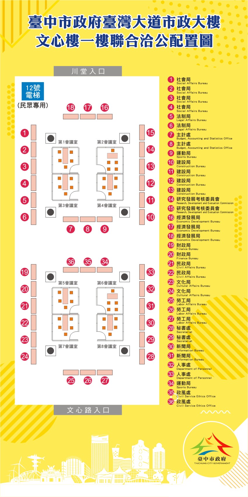 因應新冠肺炎疫情發展,台中市政府持續全力防疫並超前部署,自4月1日起,於台灣大道市政大樓文心樓1樓及陽明市政大樓1樓中庭設聯合洽公專區,台灣大道市政大樓惠中樓則為純辦公區域,不開放民眾洽公,除可縮短洽公時間,也減少接觸風險。