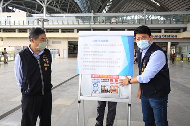 新冠肺炎疫情嚴峻,中央規定民眾搭乘大眾運輸應戴口罩,勸導不聽可開罰3000元至1萬5000元。台中市政府積極配合中央政策,副市長黃國榮今(4)日率隊至台中轉運中心視察宣導,並了解清明連假交通疏運及各項防疫措施;黃副市長表示,今日觀察民眾多有戴口罩乘車,因應中央口罩實名制4月9日起升級,目前台中市先採柔性勸導,勸導不聽才會開罰,盼民眾配合共同防範疫情。