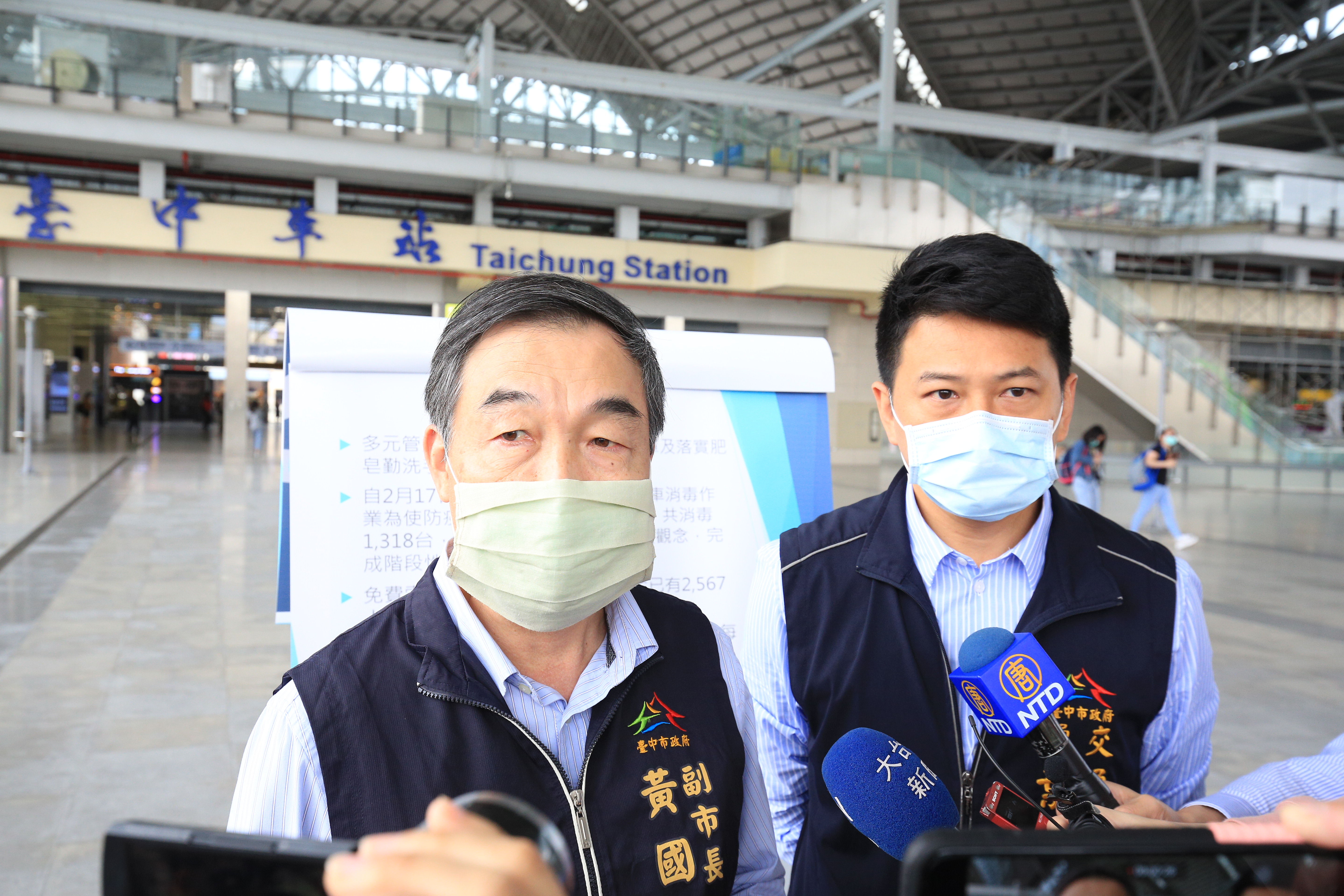 葉局長指出,市府昨日起配合中央政策,民眾在台中市搭乘公車應全程配戴口罩,並禁止於車內飲食,全市公車內、外及車站均已張貼告示海報宣導,盼民眾共同配合防範疫情。