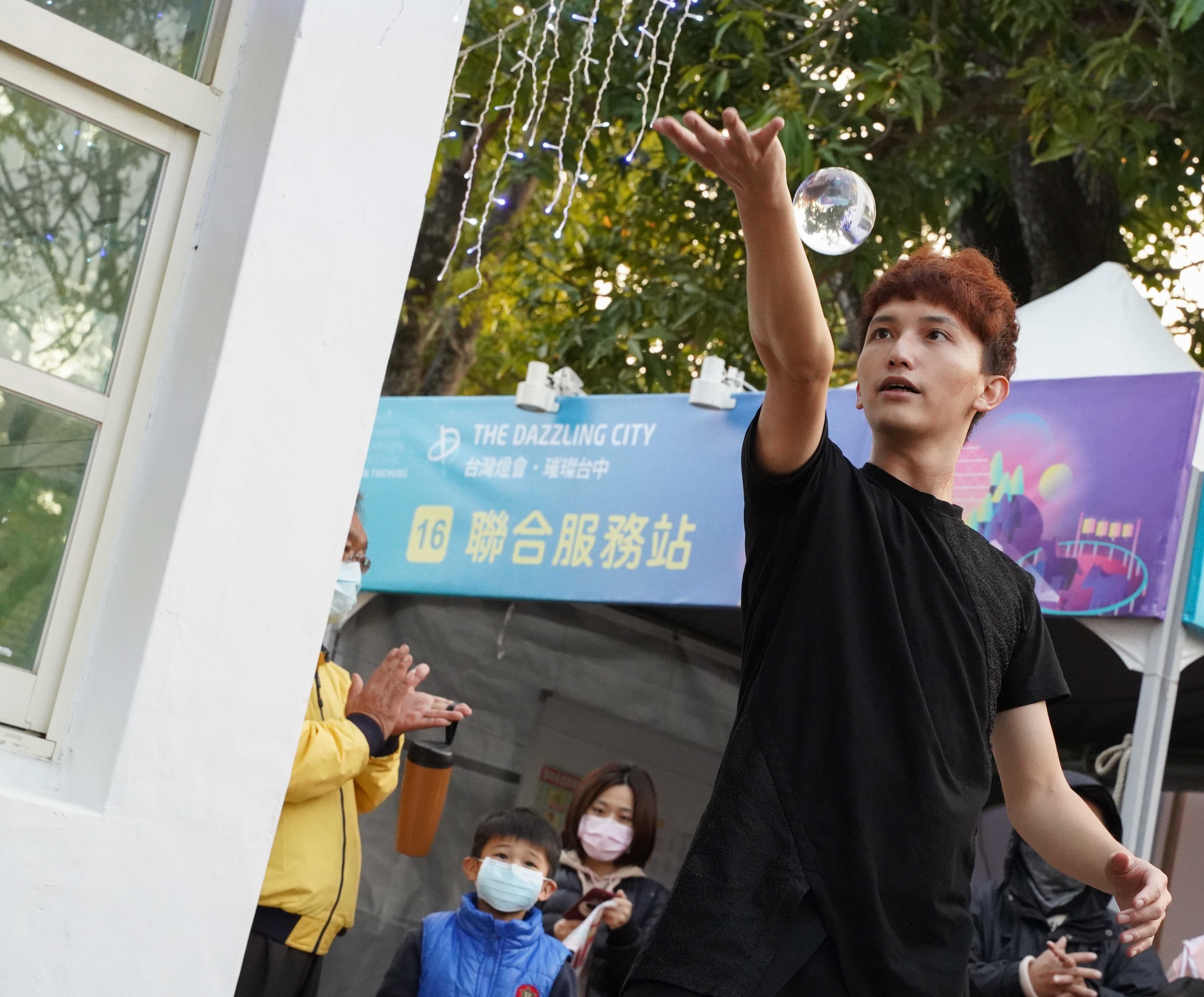 街頭藝人艾倫於2020台灣燈會在台中表演水晶球特技,吸引觀眾駐足欣賞1