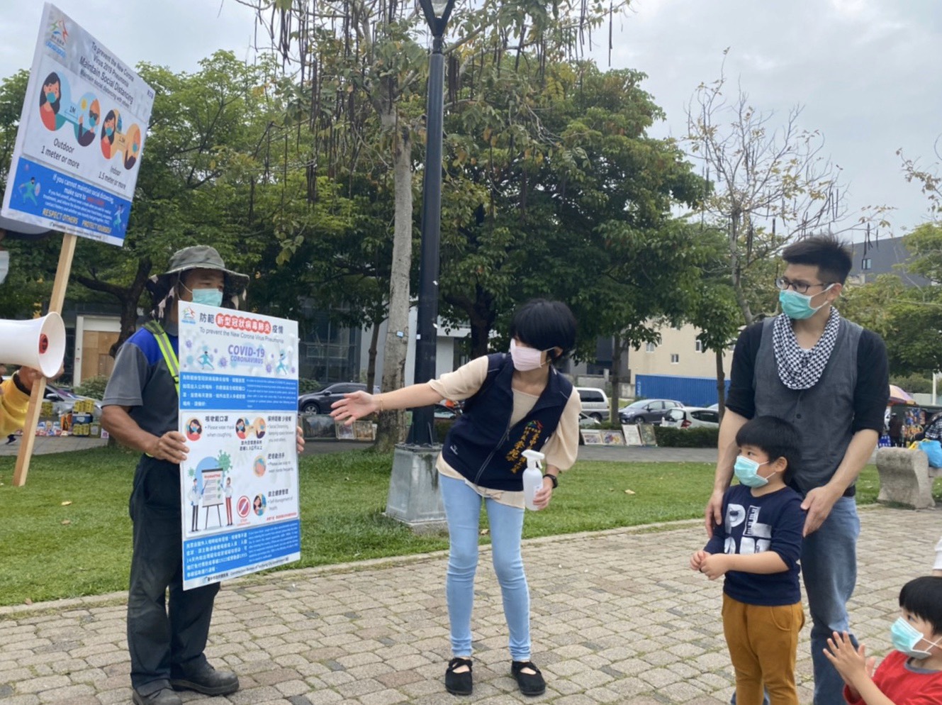 因應新冠肺炎疫情變化,台中市政府建設局超前部署各項防疫作為,於台中市各重點公園增設防疫宣導告示,並選定人潮較多的湧泉公園、新都生態公園、台中公園、中正公園、三信公園、豐樂雕塑公園及彩虹公園等7處亮點公園,每週末進行走動式防疫宣導,提倡民眾正確防疫觀念,共同維護市民安全。