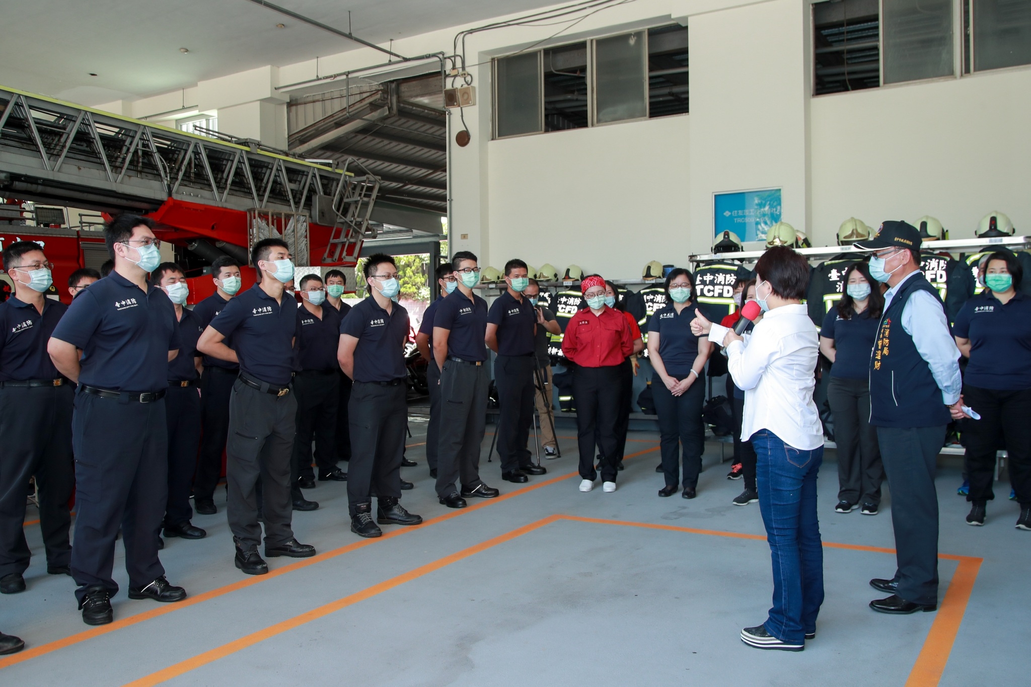 台中市政府消防局設置14支「防疫專責分隊」,負責載送由民眾或1922專線及衛生局通報的疑似個案,數量全台最多,市長盧秀燕今日也前往第七救災救護大隊慰問執勤同仁。