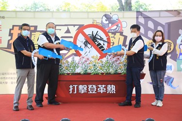 登革熱即將進入流行期,台中市政府今(30)日邀集17所大專院校、醫事公會代表等共同宣誓打擊登革熱。副市長陳子敬表示,台中市去年曾於校園發生唯一1例本土病例,由於校園腹地廣,易有死角堆積積水容器,也常見樹洞、暗溝或大型樹葉等孳生源,市府特別與台中17所大專院校合作,提出防疫三箭,並於全市學校推廣,期盼從校園開始強化登革熱防治。