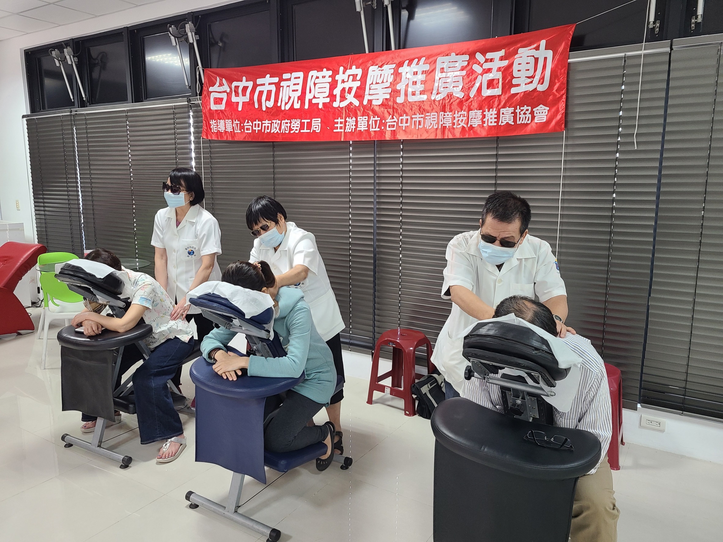 另外,「行銷」以防疫優先,持續透過按摩體驗推廣、企業特約,紓壓民眾身心,目前也規劃搭配節日、視障按摩月等聯合行銷,希望吸引新舊顧客,相關訊息可至「台中市視障按摩服務網」(https://msg.taichung.gov.tw/)查詢。「紓困」方面,市長盧秀燕已指示勞工局積極爭取中央對視障按摩師的紓困協助,勞工局將全力配合勞動部紓困方案,協助按摩師申請相關資源。