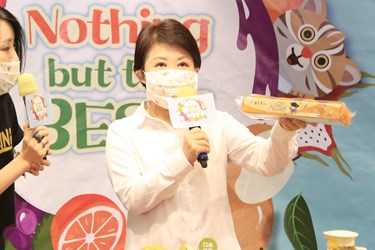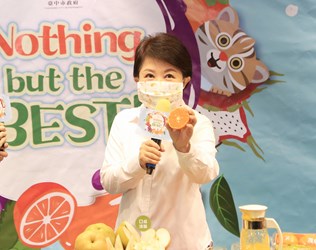 盧市長如數家珍台中在地水果,請民眾認明選購。她說,台中水果精緻高級,像是海線砂質土壤特別適合西瓜、花生、地瓜等農特產生長,特別是今年雨水較少、西瓜香甜,銷量特別好。此外,她也推薦茂谷柑等柑橘類、梨子、甜桃、紅龍果及荔枝等水果。