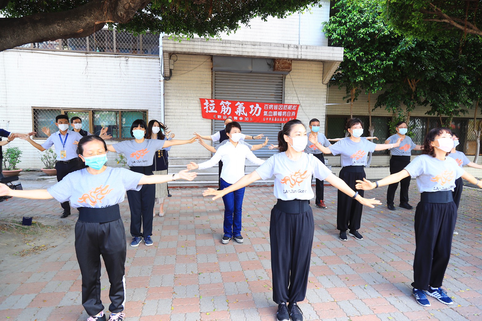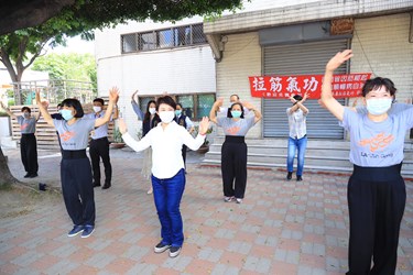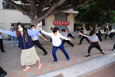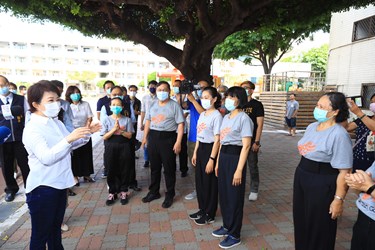 新冠肺炎疫情趨緩,台中市除了作為會考試場的學校,今(16)日起學校假日開放民眾進入活動。市長盧秀燕前往西區忠信國小視察開放情形,並陪民眾在校園裡練氣功、跳廣場舞,弓箭步、打拳、扭腰擺臀樣樣來。盧市長表示,目前校園先開放假日,平日時段研議中,將再對外公布。
