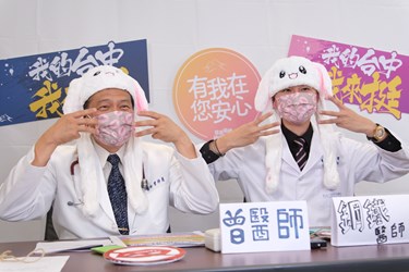 今日直播現場,曾醫師及鋼鐵醫師兩位雙帥戴起可愛兔子耳朵髮箍,玩起搶答小遊戲,過程中還唸起有趣的繞口令,現場氣氛相當歡樂;兩位雙帥醫師也共同呼籲大家要一起體諒醫護人員的辛苦,請禮貌、友善、尊重專業的醫護人員並理性溝通,共同營造安全優質的就醫環境。