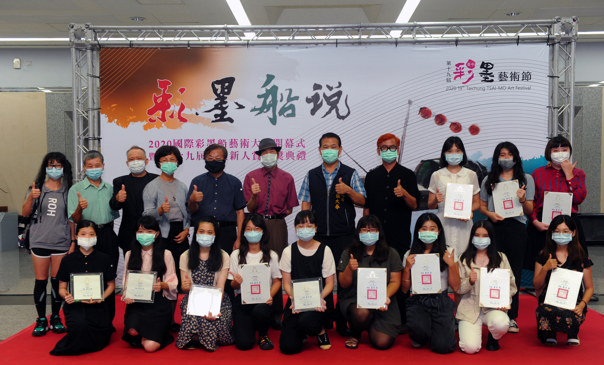 這次活動由市府文化局主辦,國際彩墨畫家聯盟、財團法人台中市文化建設基金會以及欣中天然氣股份有限公司共同協辦,今日上午10時在港區藝術中心大廳舉辦「2020國際彩墨船藝術大展開幕式」暨「第十九屆彩墨新人賞頒獎典禮」,市議員陳廷秀議員、市議員楊典忠服務處秘書蔡燿宇、國際彩墨畫家聯盟會長黃朝湖、國立師範大學美術學系教授李振明及莊連東教授、金門大學教授呂坤和等皆到場共襄盛舉,現場邀請台中市傑出演藝團隊瓊瑢舞蹈團以《墨韻》舞蹈展現彩墨之美,並藉由揚帆啟航儀式祝福活動一帆風順,為2020台中彩墨藝術節熱鬧拉開序幕。