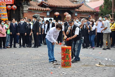 今日起駕儀式由賴副總統、盧市長共同請神明上轎,並依序由賴副總統、盧市長、郭董事長點燃3顆起馬炮,宣告今年度遶境儀式正式起駕。立法院副院長蔡其昌、立法委員黃國書、何欣純、莊競程、陳柏惟、市議員李麗華、何敏誠、江肇國、邱素貞、鄭功進、羅廷瑋、賴義鍠、民政局長吳世瑋、市府客家委員會主委江俊龍、東區區長何宜真、南區區長陳佩玉、中區區長林忠訓,以及市議員李中、蔡耀頡服務處代表均到場見證。