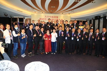 大台中商業總會今(23)日在豐原宜豐園餐廳舉行第74屆商人節大會,表揚優良商戶、優良公會理事長及績優商號等代表,市長盧秀燕出席致意,感謝商業界對台中經濟的投入與付出。她表示,新冠肺炎疫情影響各行各業,市府祭出「紓困九箭」,並調降地價稅輕稅簡政,盼協助市民共同面對艱困時期。