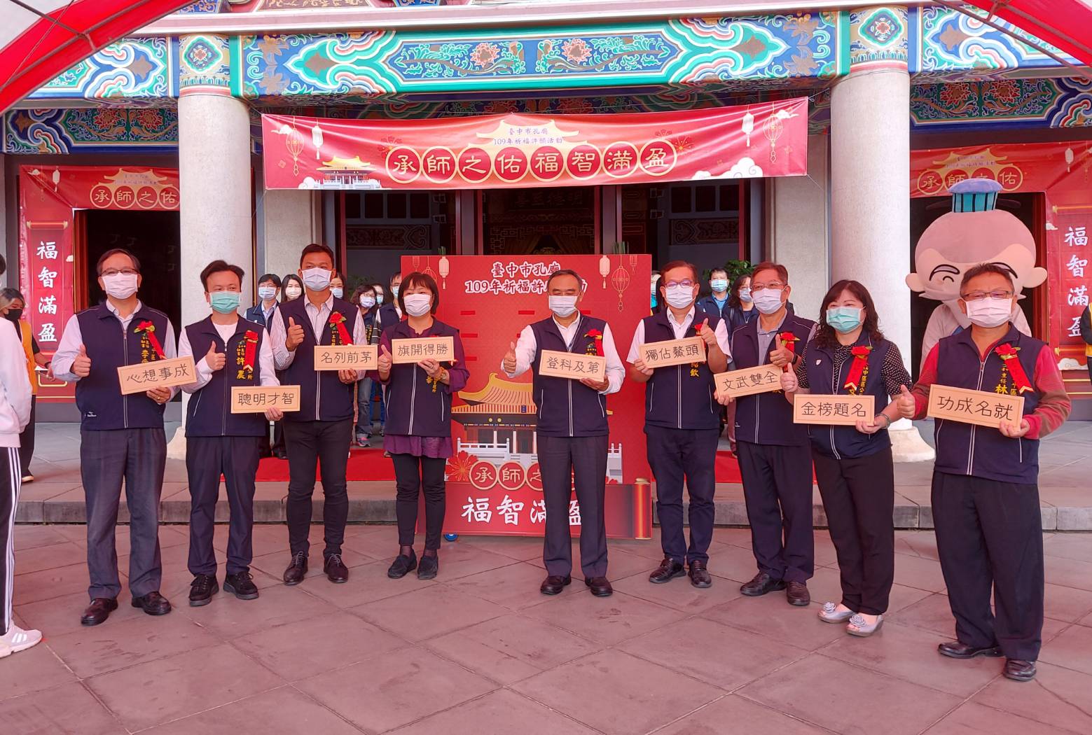 民政局表示,每年孔廟均舉行2場祈福許願活動,今年第二場原定6月,受新冠肺炎疫情影響延至10月,今日現場「智取六藝」闖關活動,透過遊戲設計,讓民眾體驗儒家六藝「禮、樂、射、御、書、數」,完成闖關者可兌換經孔子神位加持的限定好禮,現場還有Q版孔子公仔與民眾互動拍照;包括孔廟所長李書華、西屯區公所副區長洪靖欽、錦祥里長林美玉、樂英里長劉玉琦及賴旺里長黃育嘉等人均共襄盛舉,市議員羅廷瑋派代表致意。