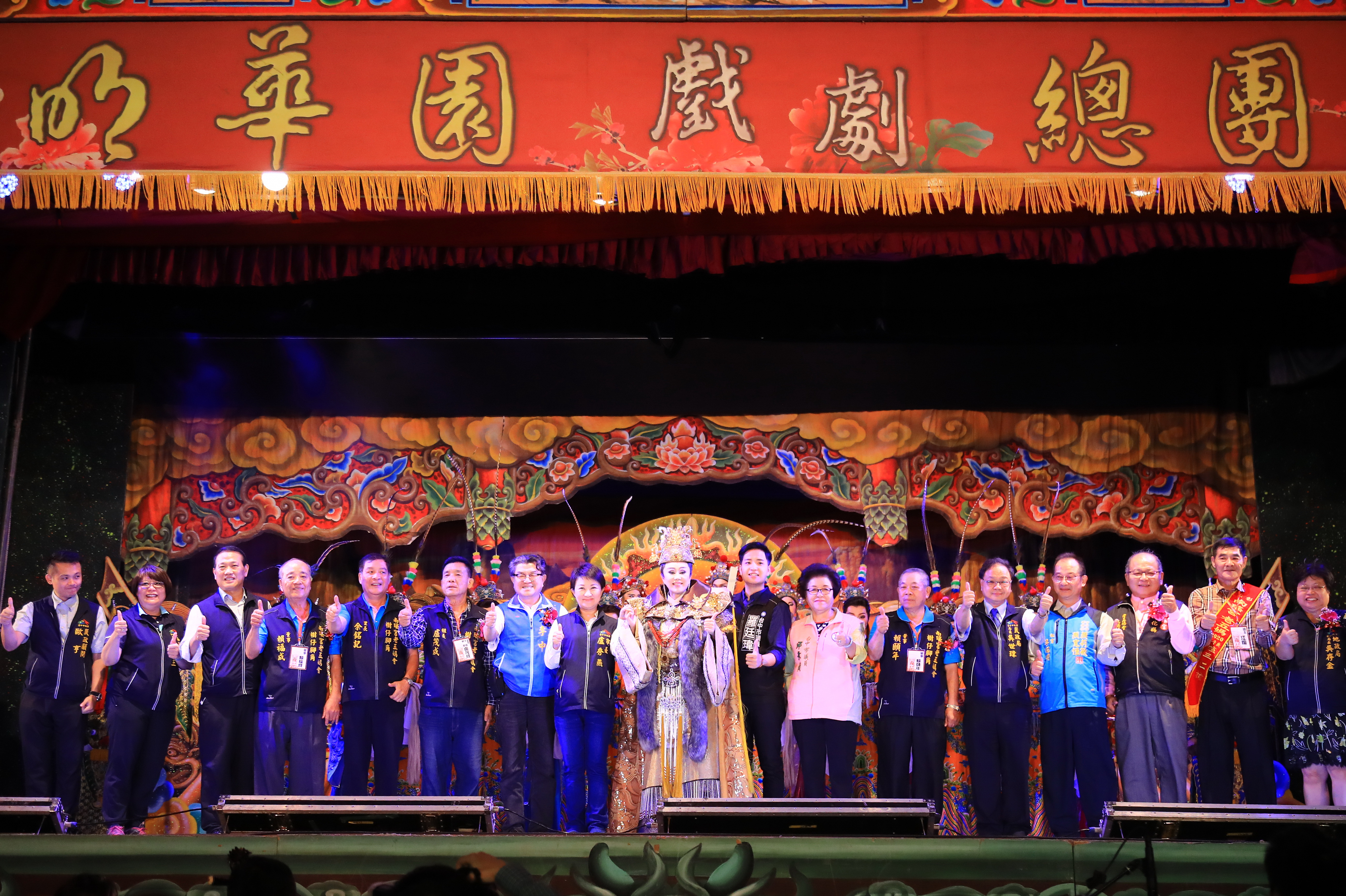 今日明華園戲劇團總團長陳勝福、彰化縣副縣長洪榮章、市府民政局長吳世瑋、地政局長吳存金、市議員李中、羅廷瑋、邱素貞、南區區長陳佩玉、各地里長及多位里民均共襄盛舉。(10/24*11)*文化局