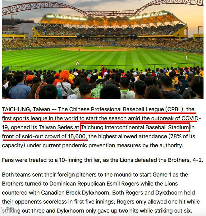 再獲國際關注!中職總冠軍賽首戰台中開打  獲世界棒壘總會報導肯定