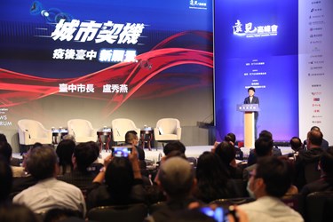 台中市長盧秀燕今(5)日受邀前往台北參加第18屆「華人領袖遠見高峰會」,以「城市契機、疫後台中」為題,分享防疫作為與振興經濟策略。她指出,市府拚防疫不忘經濟、交通與建設,不僅成功舉辦台灣燈會,更首創「紓困九箭」,藉由購物節帶動經濟效益;年底「台中國際花毯節」、耶誕城晚會、跨年晚會接連登場,「水湳中央公園」將開幕,中捷綠線力拚年底通車,打造台中宜居城。