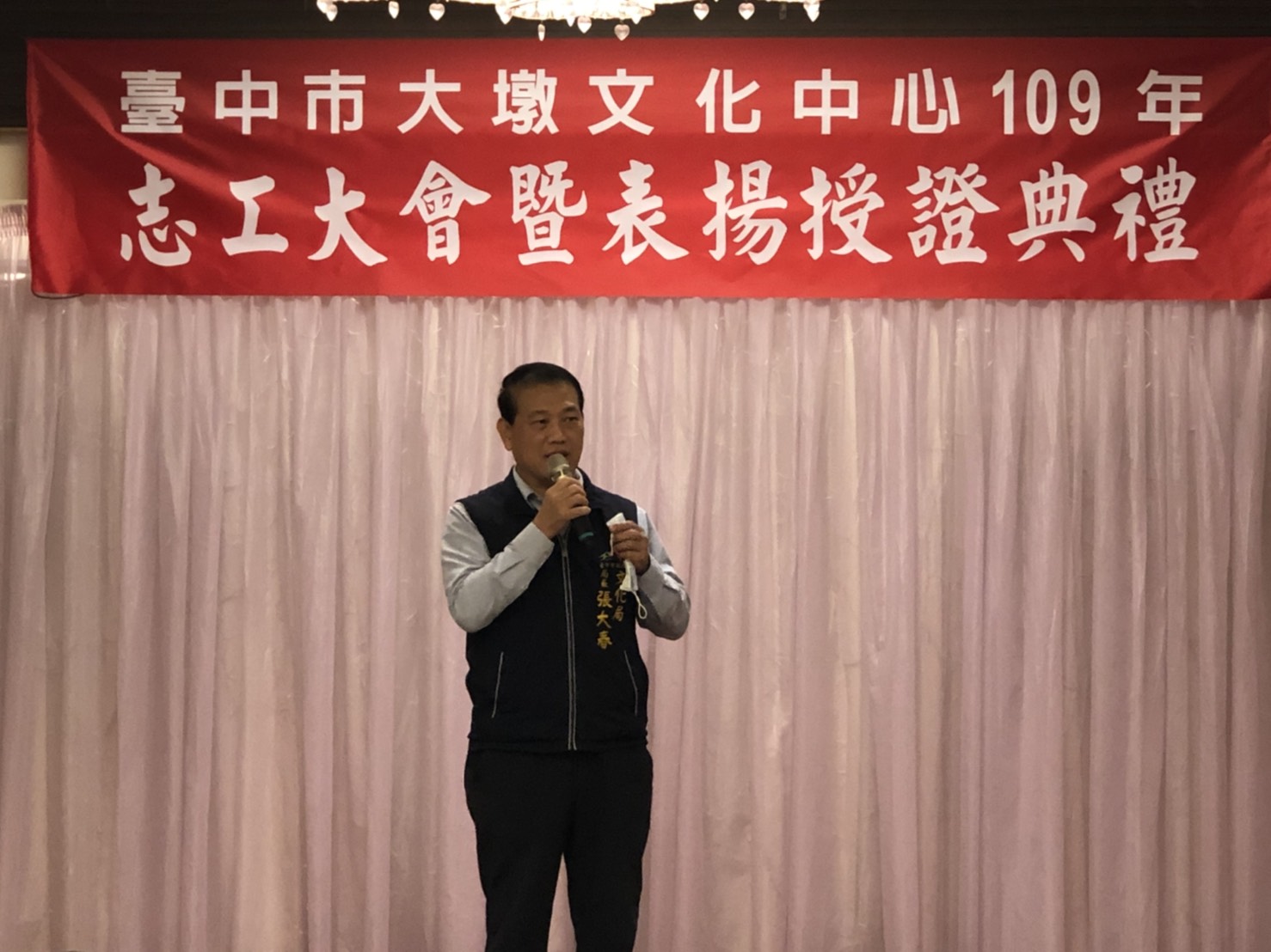 張局長表示,今年雖然受新冠肺炎疫情衝擊,但大墩文化中心是全國知名的藝文場館之一,參訪民眾連年單月逾23萬人次、業務十分繁忙,有賴於館內140位志工,協助大墩藝廊視覺藝術、中山堂表演藝術及中心藝文研習課程與大墩大師講堂等重要藝文推廣活動,為大墩文化中心灌注許多運營能量。