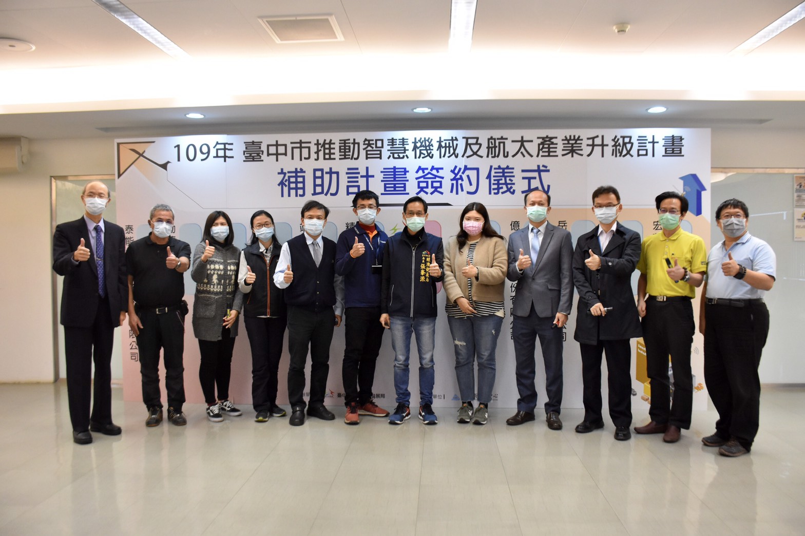 今(13)日市府舉行「機械及航太研發補助」簽約儀式暨管考說明會,於活動場地展出歷年廠商執行成果,促進各廠商經驗交流。經發局長張峯源表示,109年新冠肺炎疫情衝擊全球,為重振產業活力及強化廠商競爭力,市府持續推動機械產業研發升級,辦理第4年「台中市推動智慧機械及航太產業升級計畫」,激勵廠商投入資源優化產線、研發新技術。