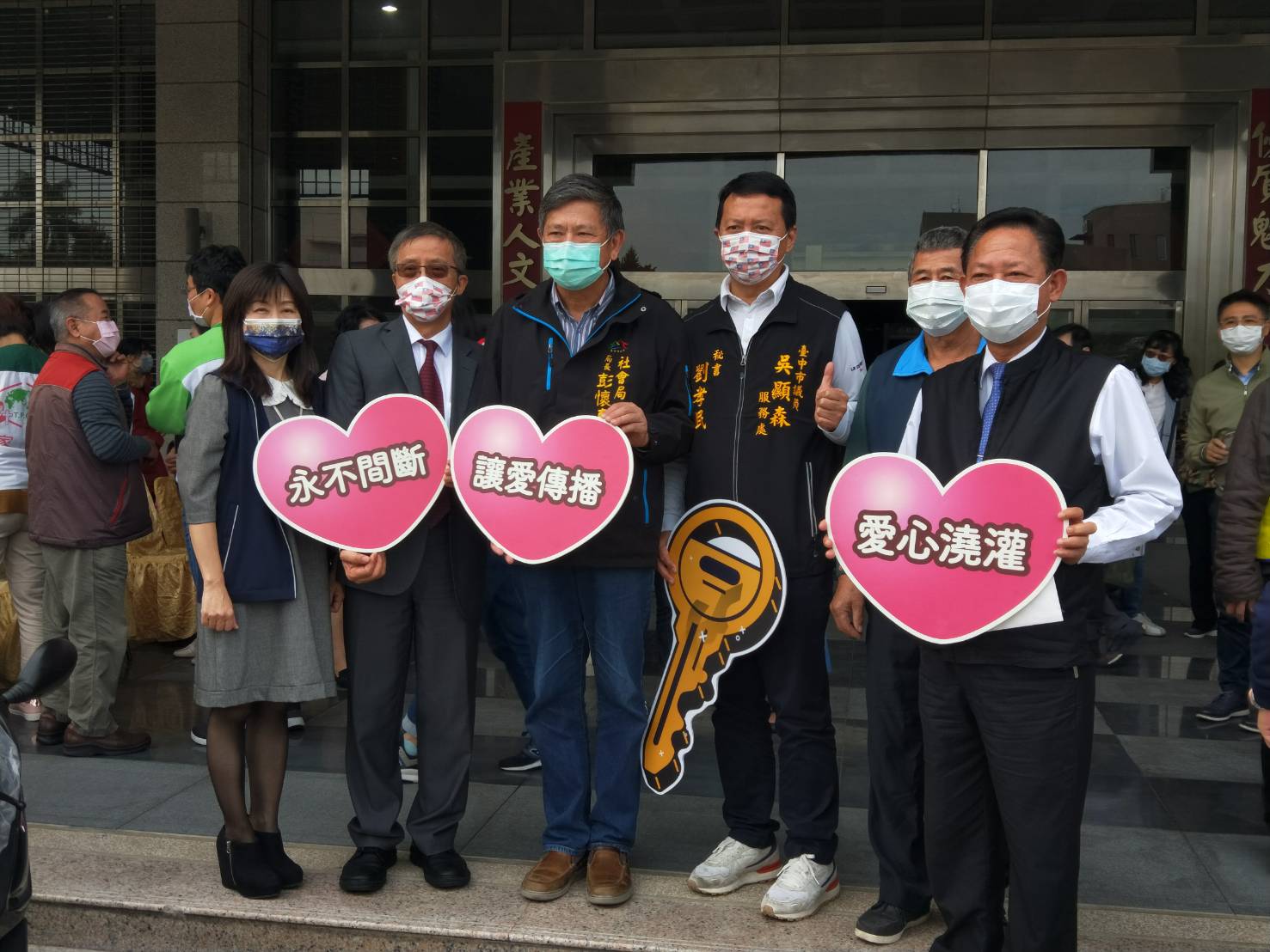 台中市政府社會局今日上午於陽明市政大樓舉行公務機車捐贈儀式,由財團法人鑫茂教育基金會董事長翁慧圓代表將車鑰匙贈予社會局彭局長,象徵民間資源集結扶助台中,與社會福利機構共創愛的力量;市議員吳顯森服務團隊也到場見證。