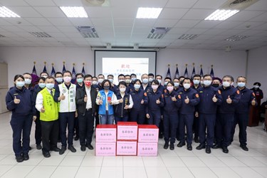 春節連假將至,台中市警察及民防、義警、義交、志工、守望相助隊等相關維安能量不打烊,已自2月3日22時起啟動為期15日的加強重要節日安全維護工作。市長盧秀燕體恤第一線人員辛勞,今(5)日上午特別前往警察局頒發加菜金,晚間更率副市長陳子敬及警察局長楊源明等人續至第六分局慰勉員警及協勤民力,並致贈年節禮盒,感謝大家堅守崗位,為市民服務。
