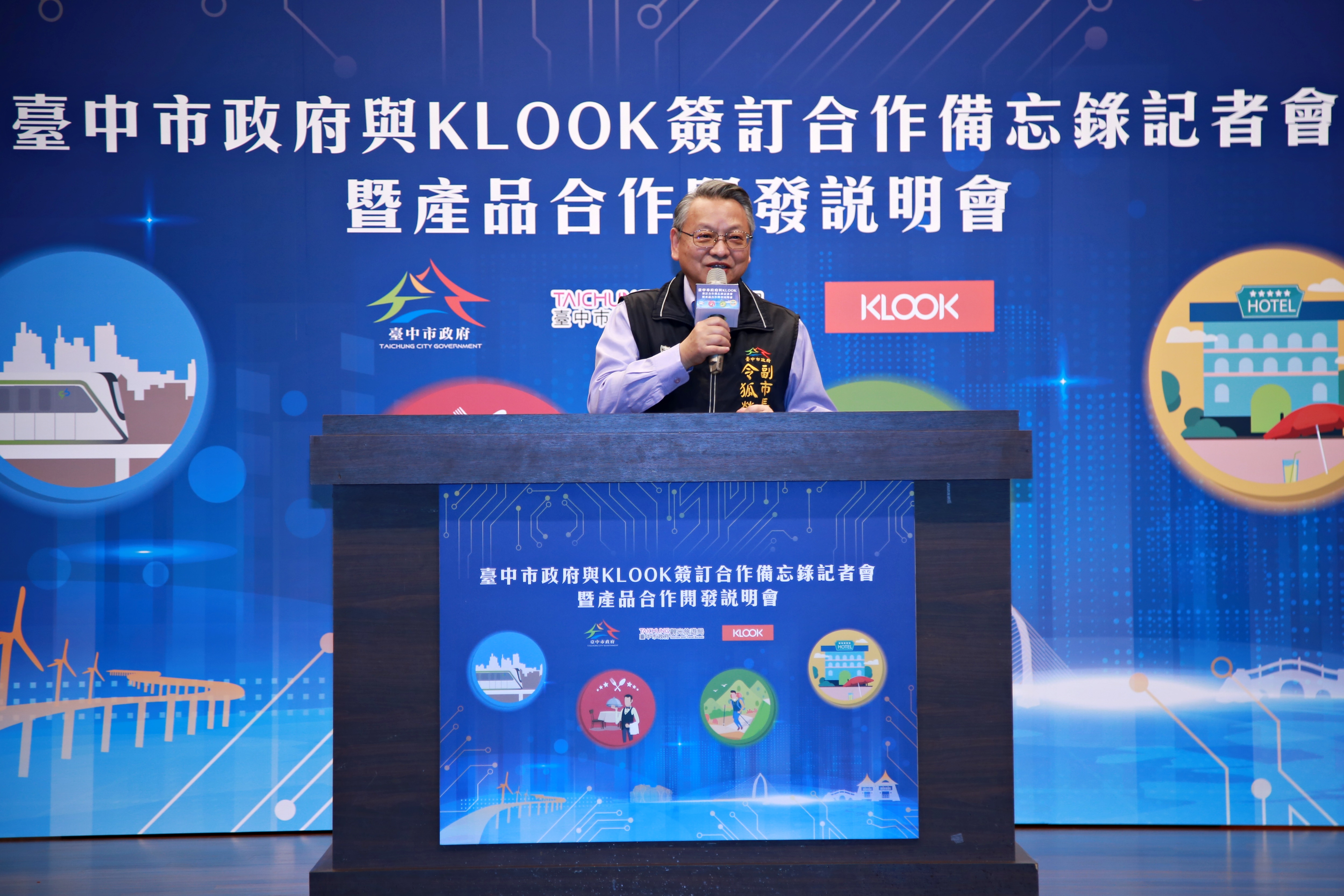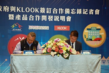 台中市政府為協助旅遊業者數位轉型,與全球領先的旅遊體驗預訂平台KLOOK簽訂觀光合作備忘錄,媒合旅遊業者與KLOOK開發及行銷各種台中旅遊體驗,預計今年6月底前開發百種以「捷運旅遊」、「米其林及特色美食」、「宅度假」及「山林探索」為主題的旅遊商品,吸引旅客選購來訪。副市長令狐榮達表示,台中山、海、屯、城觀光資源豐富獨具魅力,期待雙方合作將旅客帶進台中。