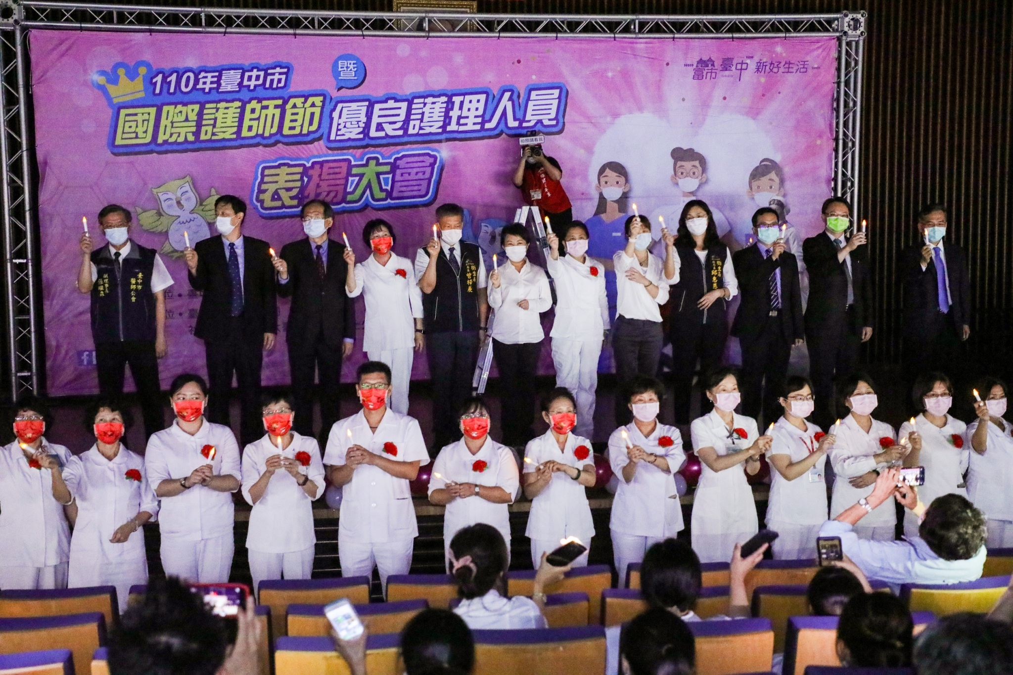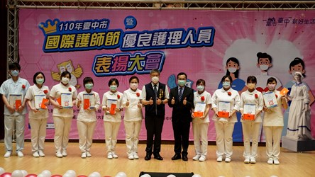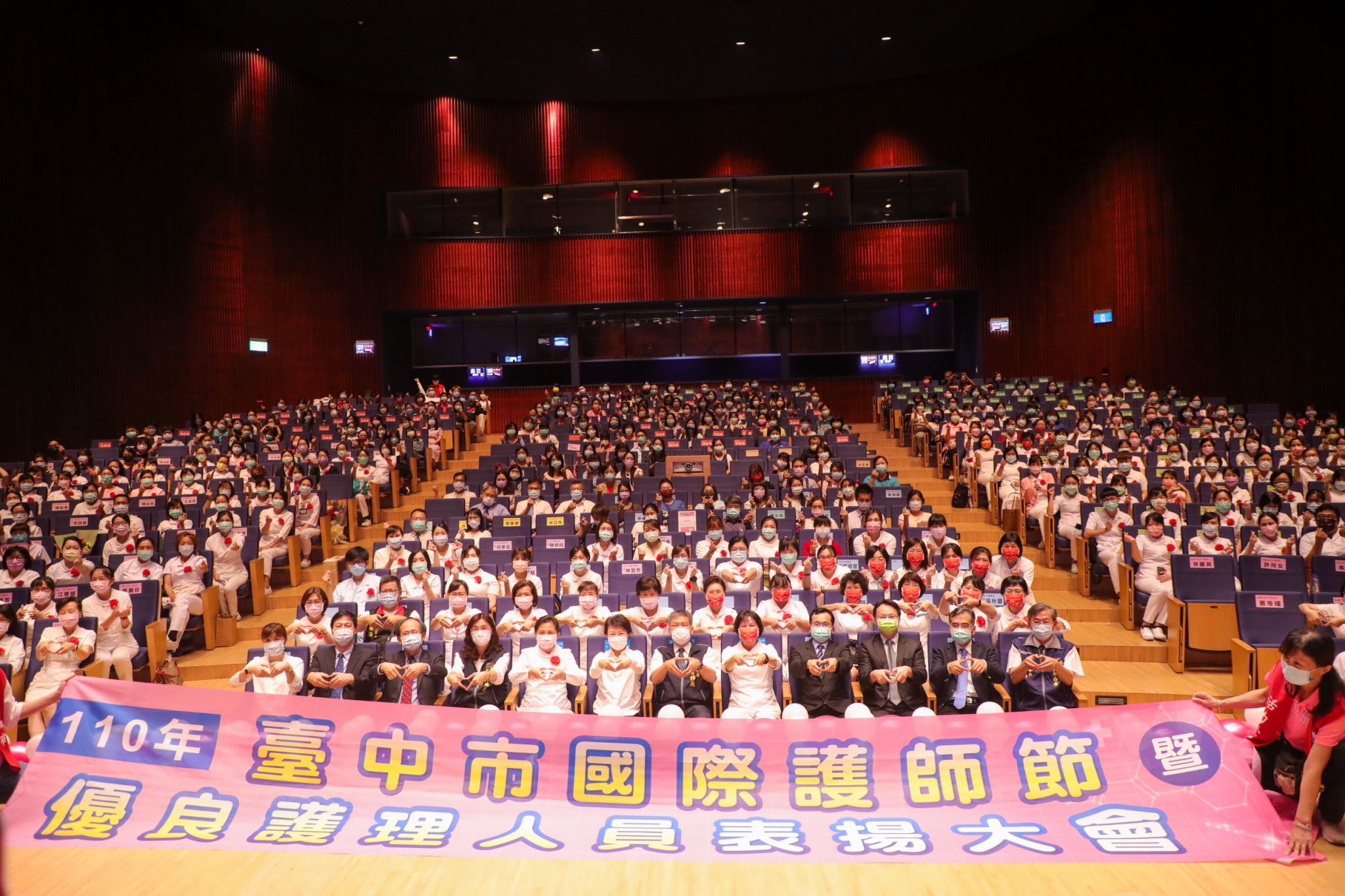 今日「110年台中市國際護師節暨優良護理人員表揚大會」由市府衛生局、社團法人台中市大台中護理師護士公會及台中市護理師護士公會合作舉辦,包含台中榮民總醫院院長陳適安、台中國軍總醫院院長洪恭誠、國軍總醫院中清分院院長王守正、台中醫院副院長林紹雯、中山附醫護理部副院長吳姿蓉、光田綜合醫院副院長張家築、大台中醫師公會理事長魏重耀、台中市醫師公會副理事長張繼森、台中市大台中護理師護士公會理事長莊淑婷、台中市護理師護士公會理事長李秋香、各醫院護理部主任等均出席;另外市議員黃仁及賴佳微服務處也派員到場。(5/7*17)*衛生局