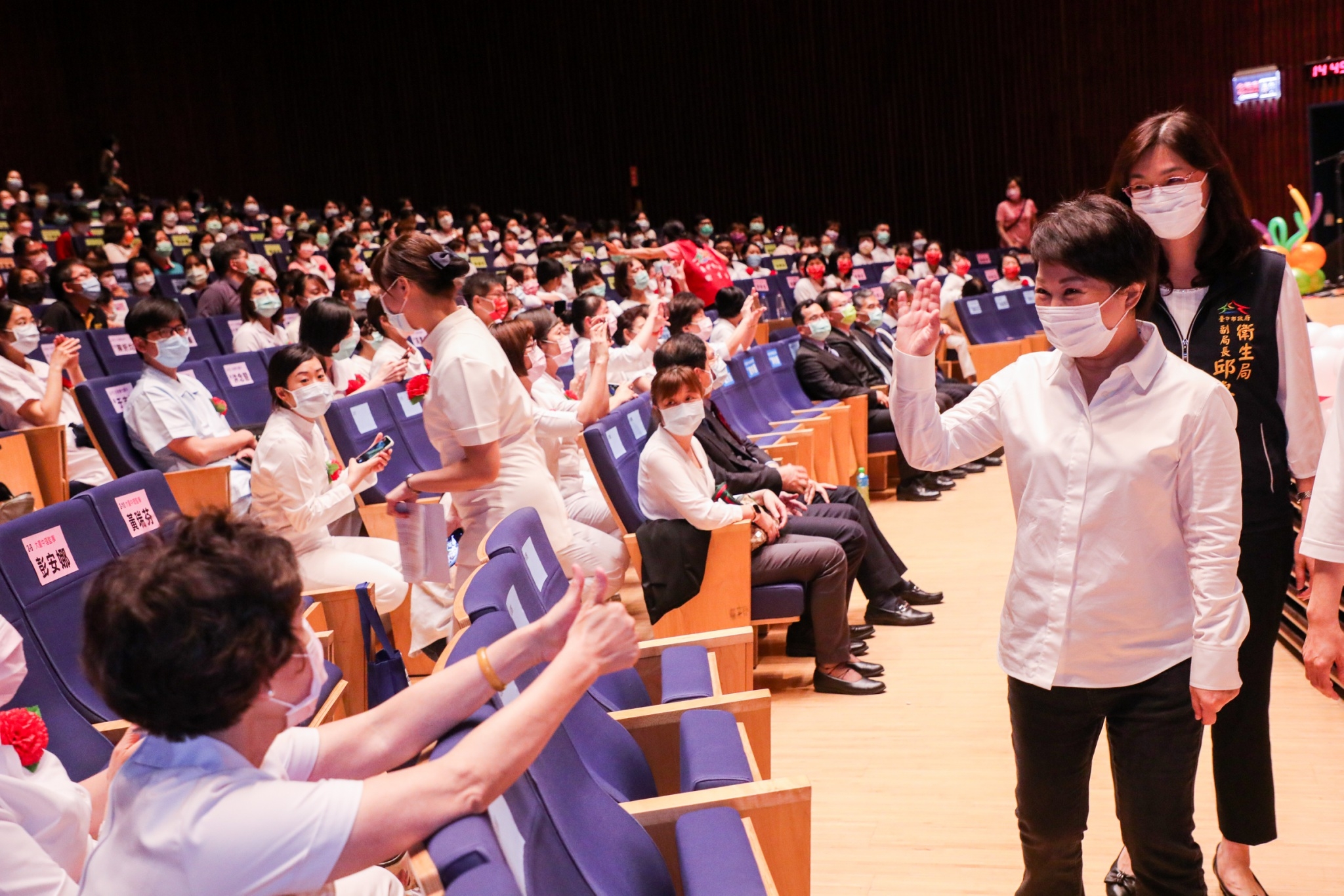 512國際護師節將至,台中市共有23,000多位執業護理人員不分晝夜、不辭辛勞守護市民健康。「感謝守護城市的天使」,市長盧秀燕今(7)日出席國際護師節暨優良護理人員表揚大會,向155位獲選的優良護理人員致上最高敬意。