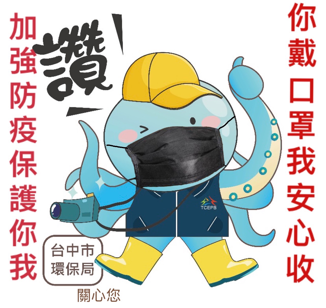 國內疫情嚴峻,台中市清潔隊員日前即自主性於臉書倡議「倒垃圾戴口罩」行動,並主動於沿街收運垃圾時,宣導民眾「倒垃圾戴上口罩」。台中市政府環保局發文力挺,同時製作宣導貼紙,貼在每一位清潔人員工作的安全帽上,以實際行動,共同響應宣導市民戴口罩倒垃圾。