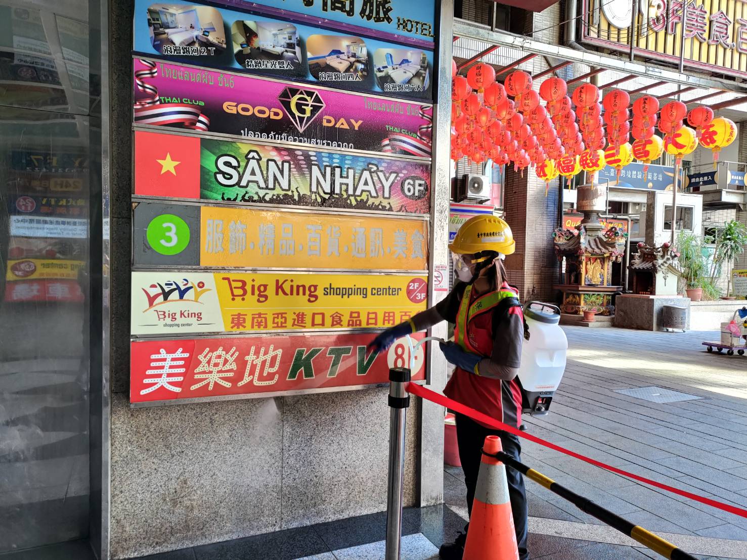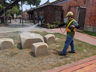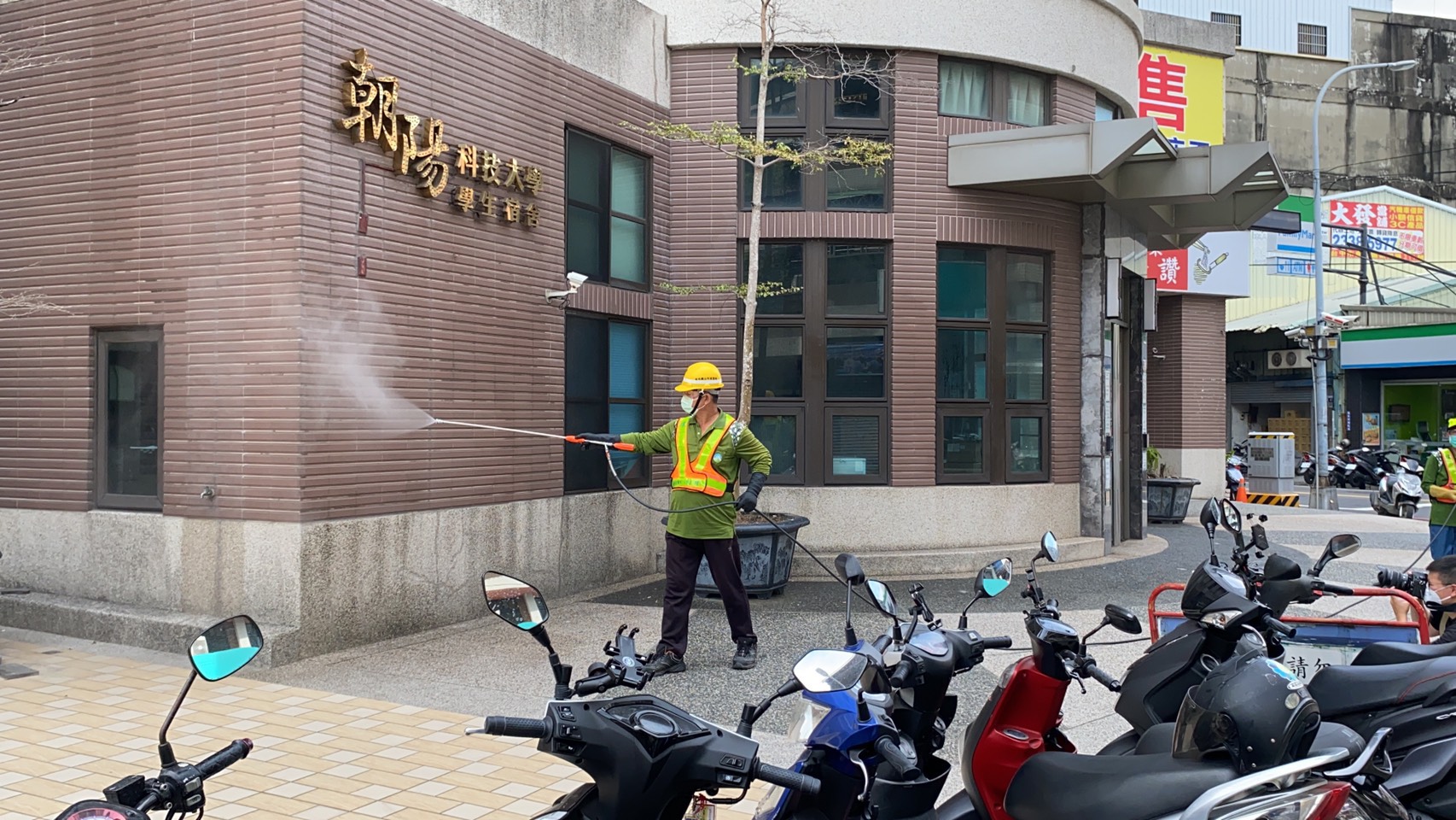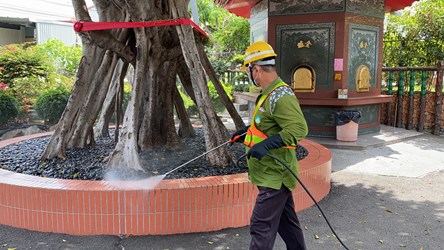 朝陽科技大學出現本土確診案例,台中市政府環境保護局繼20日及21日動員大批防疫消毒大隊人力及20輛次水霧式消毒車,進行確診足跡地點、朝陽科大當地區里及周邊重點區域沿街全面消毒作業後,今(22)日再度動員12個區隊,近50名人力及12輛消毒車輛跨區支援,鎖定霧峰區重點區域及朝陽科大夜唱團聚集點的東協廣場,執行地毯式清查大消毒,保護市民健康。