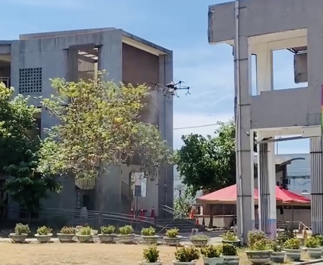 全國首創科技防疫!中市環保局啟動泰安國小無人機消毒