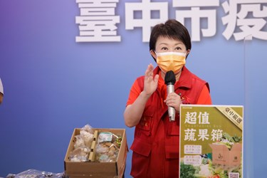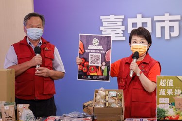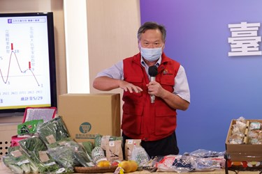 蔡局長說明,由霧峰區農會推出的「蔬菜箱」,內含台中果菜市場及大肚區農會供應的當令青江菜、空心菜、蚵白菜、油菜、彩色甜椒、絲瓜、小黃瓜等葉菜及根莖菜類,經台中果菜市場快篩質譜儀檢驗合格,並搭配霧峰區農會生產的有機黑翅鳶米,分為699元小家庭組及899元大家庭組。