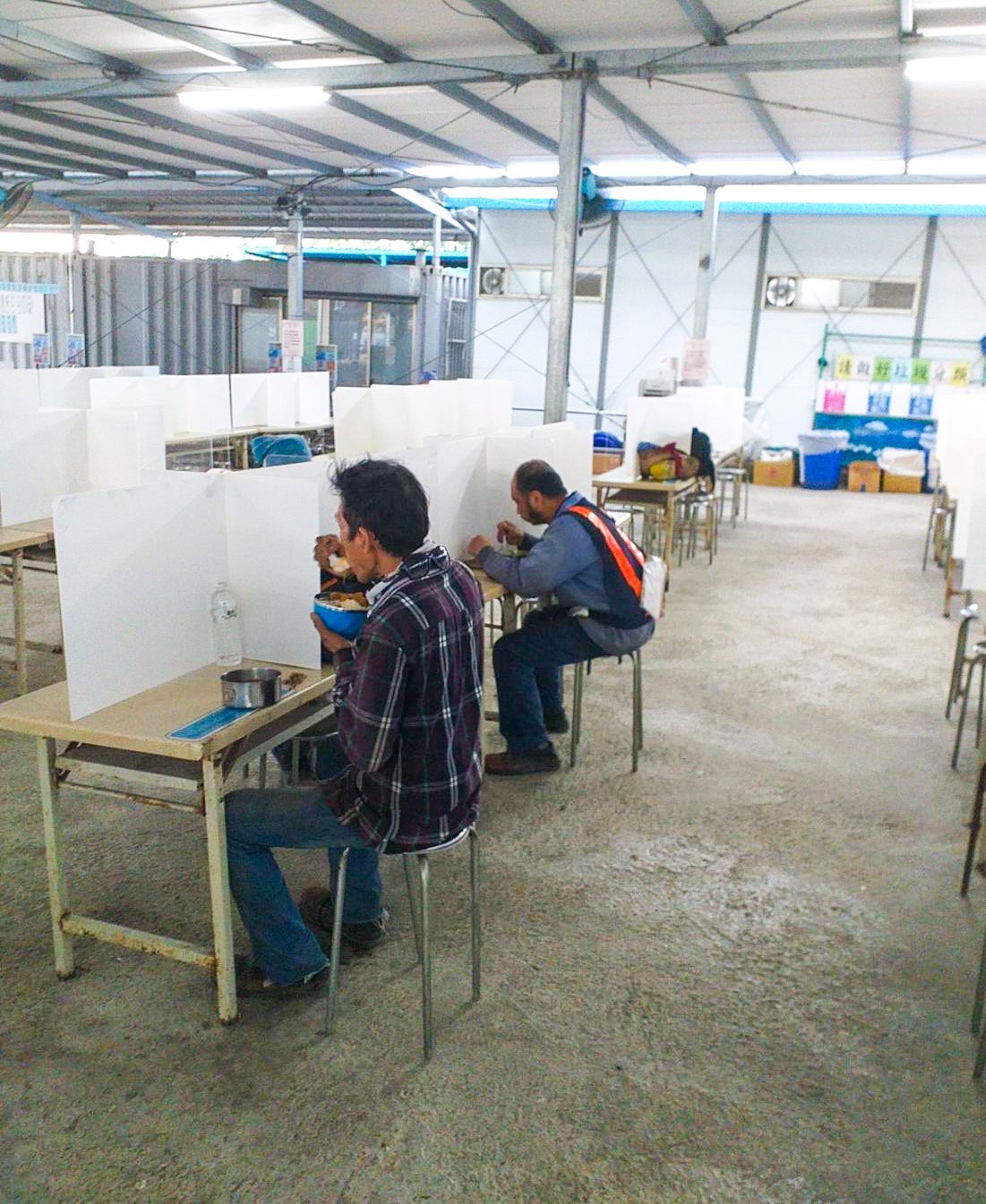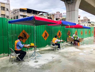 建設局強調,工人朋友是成就城市蛻變的重要基石,台中市固守防疫工作的同時,也不能讓城市建設止步,建設局持續宣導雇主辦理公共工程時提供安全的用餐環境,原則採室內為主,有工務所的工地可利用工務所室內空間,無工務所的工地可尋找通風良好處,設置太陽傘或歐式棚帳架並放置桌椅,無論室內外桌位皆配置隔板、採梅花座位,保障作業工人用餐權益。