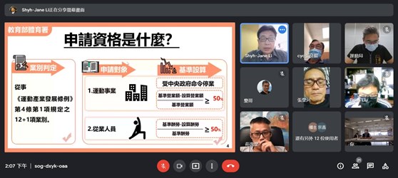 協助申請「運動紓困4.0」 中市運動局邀集運動產業與體育署視訊交流
