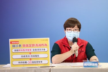 針對旅館清消作業,觀旅局長韓育琪指出,南投確診個案14356於6月16日至22日數次進出台中市4家旅館,衛生局掌握相關疫調後,隨即通報觀旅局,觀旅局當下要求旅館業者即刻暫停營業、落實全館清消,完成清消作業後,須檢具報告提報市府,經觀旅局核備後,3日後始得營業。此外,個案於6月18日曾到悠跑-逢甲Adidas專賣店購物,經發局接獲通報後,即刻通知業者停業並進行館內清消作業,亦須檢具清消報告,由經發局檢視後,才會通知復業。