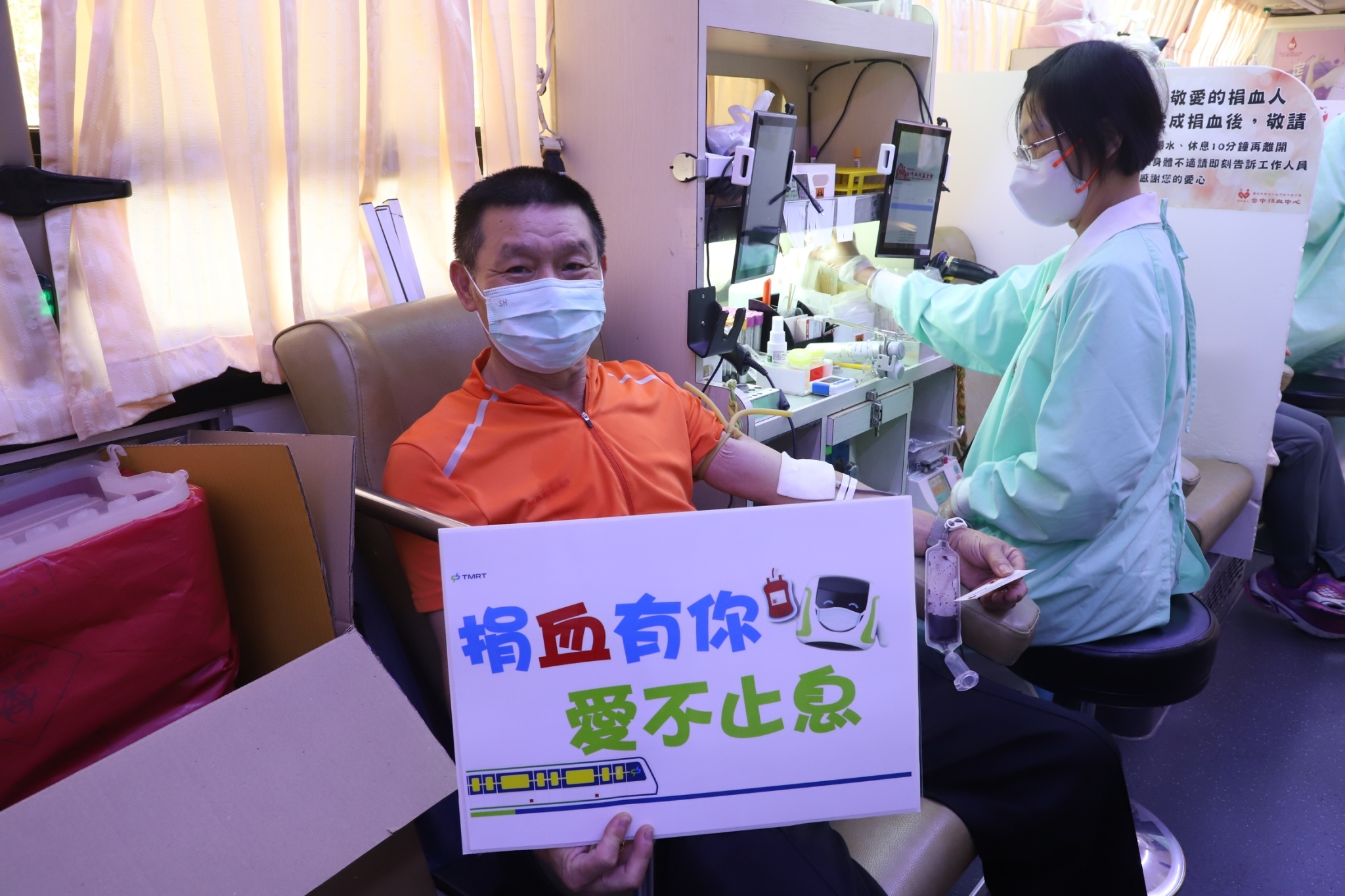 熱血助人不落人後!台中捷運公司今(2)日在北屯總站舉辦捐血活動,由總經理莊明聰、副總經理葉進財帶頭號召員工捐血,民眾也熱情響應,截至中午12時,已有36人捐出51袋血液。中捷公司表示,捐血活動將持續至16時,希望能達到募集100袋的目標。