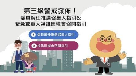 住宅處表示,依中央函示,疫情三級警戒期間暫停召開區權會,管委會任期屆滿得書面互推召集人暫代;如有重大緊急情況,在取得住戶共識及足夠設備下,得採用視訊方式召開區權會。目前中央對流程無明確指引,因此市府特別製作指引,以常見的手機通訊軟體(Line)做為視訊區權會實際操作範例,提供社區參考。