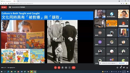 研習課程中,東海大學美籍講師Amanda Parmley Wu分享,台灣屬於「高語境文化」國家,講話較婉轉,人際交流常需揣摩對方表情,網路使用的表情貼圖即起源於亞洲;反觀歐美國家大多屬於「低語境文化」國家,交際信息常透過直白語言,傳遞的暗示信息較少。Amanda講師以她和台灣老公的對話情境為例,當老公需要新牙膏時會說:「老婆,牙膏用完了。」她會回說:「你講話為何要拐彎抹角?為何不直接說你要新牙膏?」