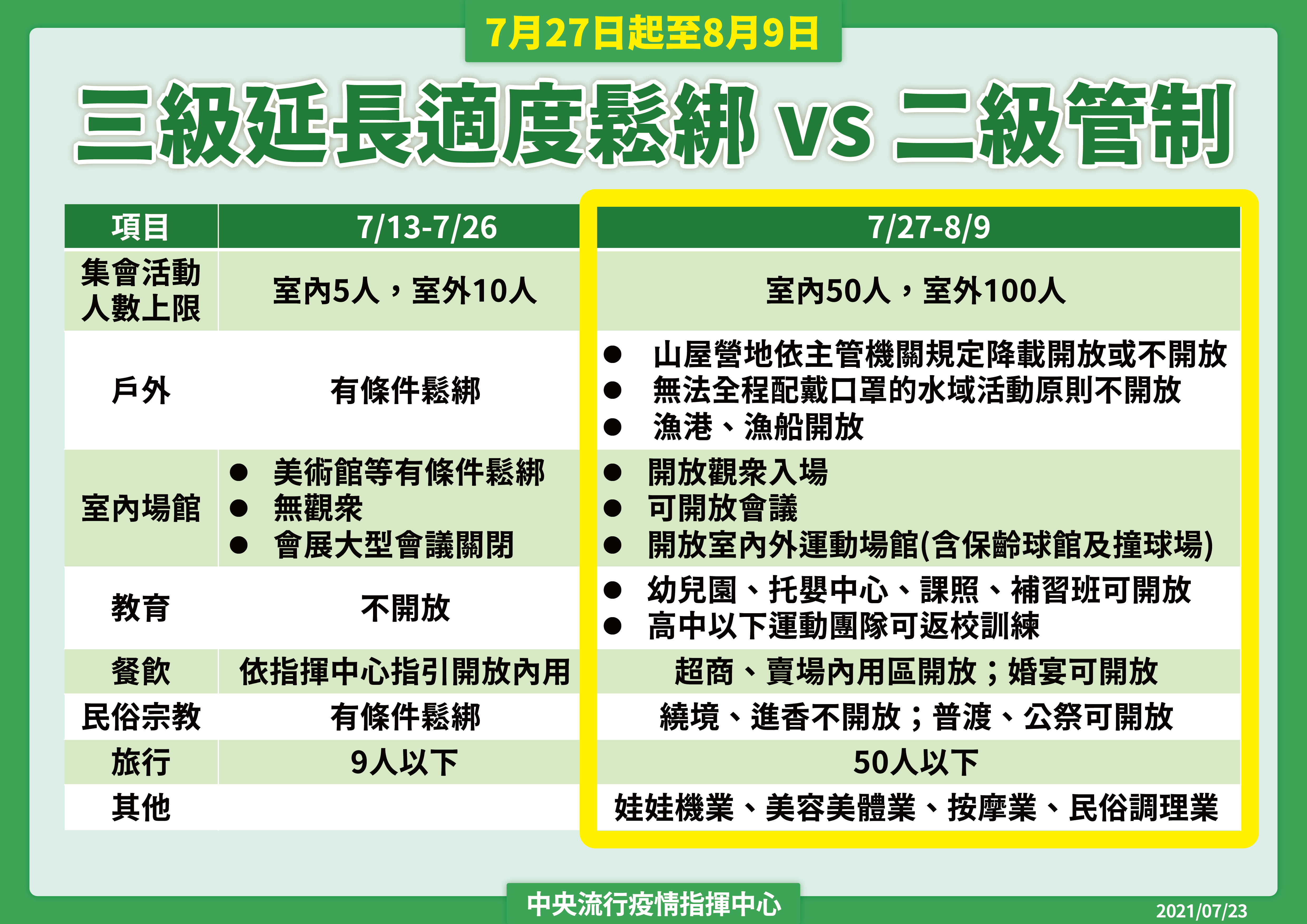 7/27起全國降至二級警戒 中市室內外運動場館適度放寬